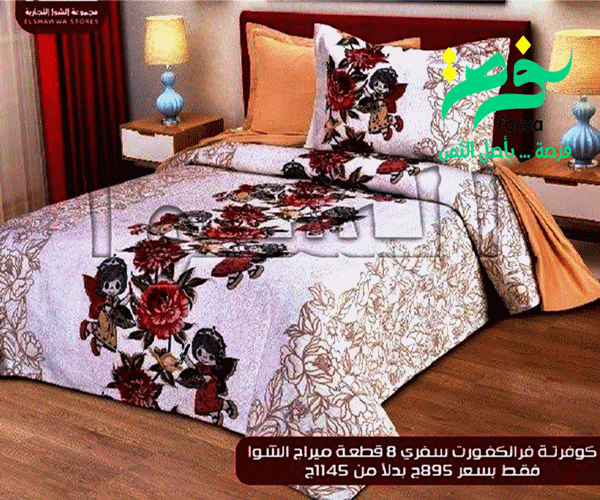 كوفرتة بيكا 8 قطع عبارة عن طقم سرير يتضمن عادةً 2 كوفرتة، 2 ملاية، 2 خدادية، و 2 مخدة. هذه الطقم مصنوعة من خامات عالية الجودة مثل القطن، وتقدم راحة ممتازة وتصميمات متنوعة تناسب جميع الأذواق. مكونات طقم كوفرتة بيكا 8 قطع: 2 كوفرتة: تغطي السرير بالكامل وتوفر الدفء والراحة. 2 ملاية: تغطي السرير من الأسفل وتوفر طبقة إضافية من الراحة. 2 خدادية: تزين السرير وتوفر دعمًا إضافيًا للرقبة والكتفين. 2 مخدة: توفر دعمًا للرأس والرقبة أثناء النوم. مميزات طقم كوفرتة بيكا 8 قطع: خامات عالية الجودة: مثل القطن الناعم والمنسوج جيدًا. تصميمات متنوعة: تتناسب مع جميع الأذواق. راحة ممتازة: توفر راحة ودفء أثناء النوم. تغطية كاملة: تغطي السرير بالكامل وتمنحه مظهرًا جذابًا. دعم جيد: توفر دعمًا جيدًا للرأس والرقبة أثناء النوم. نصائح لاختيار طقم كوفرتة بيكا 8 قطع: اختر المقاس المناسب: تأكد من أن المقاس مناسب لحجم سريرك. اختر الخامة المناسبة: اختر الخامة التي تناسب ذوقك وتفضيلاتك الشخصية. اختر التصميم المناسب: اختر التصميم الذي يناسب ديكور غرفة نومك. لا تتردد في طلب العينة: إذا كنت ترغب في التأكد من جودة الخامة أو التصميم، يمكنك طلب عينة قبل الشراء. أمثلة على أماكن بيع طقم كوفرتة بيكا 8 قطع: Galleria Egypt, مجموعة الشوا التجارية, Raneen, Babamisr, didosiia.com. طقم كوفرتة سفرى 8 قطع بطقم سرير ميراج - مجموعة الشوا التجارية طقم كوفرتة سفرى 8 قطع بطقم سرير ميراج مكونات الطقم 2 كوفرته سرير اطفال مقاس 180 × 240 سم 2 ملايه قطن سرير اطفال مقاس 180 × 240 سم .