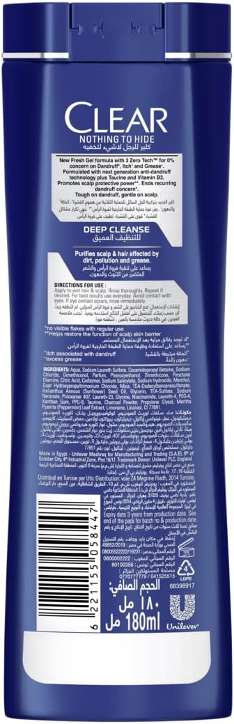 العلامة التجارية: كلير الحجم: 180 مل الفئة المستهدفة: الرجال نوع الشعر: جميع أنواع الشعر شامبو التنظيف العميق للشعر بخلاصة الفحم النشط والنعناع