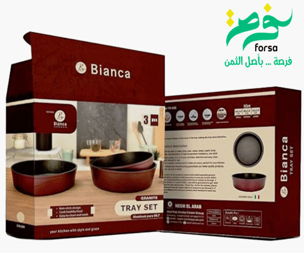 طقم صواني جرانيت Bianca مدور 3 قطع لون نبيتي مقاس (30 – 28 – 26)سم سُمك 4 مللي – سُمك الجوانب 5.6 سم جودة عالية (جرانيت) غير لاصق خامة الطلاء (إيطاليا) ألومنيوم نقي 99.7% ثقيل جدا سهل التنظيف آمن للاستخدام