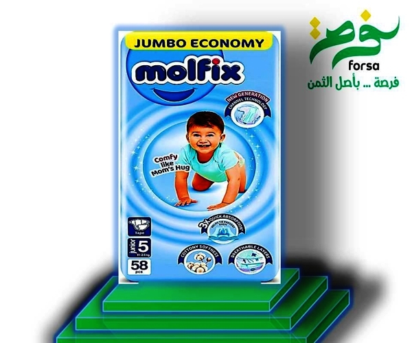 إن حفاضات مولفيكس مزودة بمؤشر للبلل يتغير في اللون من الأصفر إلى الأزرق ليشير إلى أنه حان وقت تغيير الحفاض حفاضات مولفيكس لا تسبب الحساسية وهي خالية من اللاتيكس والبارابين والبيسفينول لطيفة على البشرة) جزء مخصص لمنطقة الحبل السري للحفاظ على سلامة المنطقة تقنية اير سوفت بنعومة قطنية لطفلك حديث الولادة مستخلصات الألو فيرا والبابونج لتترك بشرة طفلك ناعمة بشكل طبيعي التعبئة: قد تكون متعددة